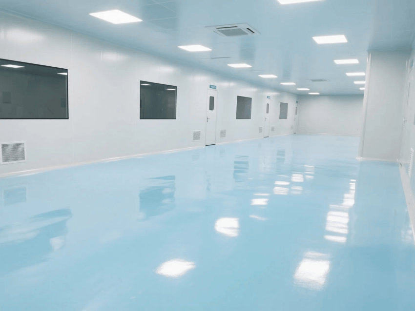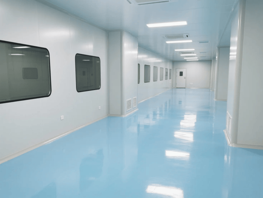 本方案依據ISO14644-1Class7(萬級)潔凈標準設計,采用淺藍色彩鋼板與啞光白環氧樹脂墻面構成主視覺系統,營造科技感與潔凈度并重的生產環境。圍護結構選用50mm厚雙面不銹鋼復合板,所有陰陽角均采用R50mm圓弧過渡處理,確保無衛生死角。