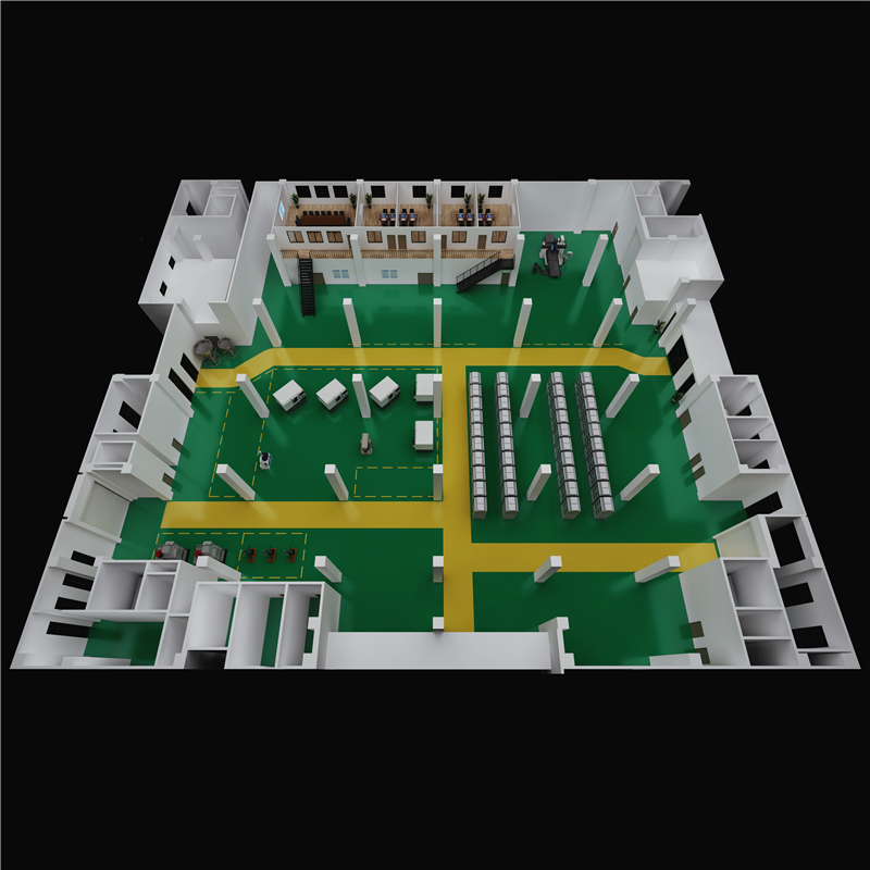 整個車間以白色為主色調,營造出干凈、整潔的氛圍。地面采用了光滑的白色瓷磚,便于清潔和維護。車間內的門和門框大多是不銹鋼材質,顯得堅固且易于清潔。 車