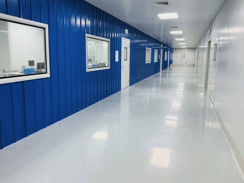 淺灰導電環氧地坪系統電阻值穩定在10^6-10^9Ω,添加石英砂耐磨骨料,使用壽命達10年以上;