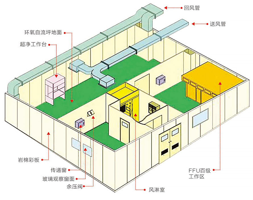潔凈廠房亦名潔凈室、超凈間、無(wú)菌車(chē)間、凈化房等,定義為將一定空間范圍內(nèi)空氣中的微塵粒子,有害空氣,細(xì)菌等污染物排除,并將室內(nèi)之溫濕度、潔凈度、室內(nèi)壓差、氣流速度與氣流組織、噪音震動(dòng)及照明、靜電等控制在一定范圍內(nèi),而所給予特別設(shè)計(jì)的密閉空間。