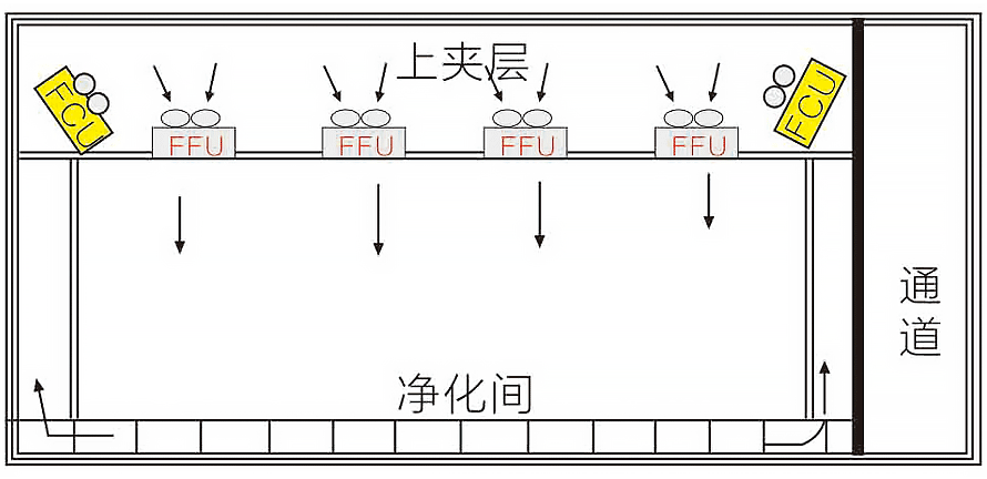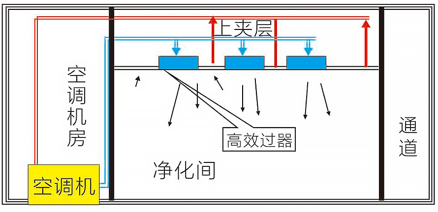 2、單夾層、集中送風(fēng)、上夾層為靜壓箱.