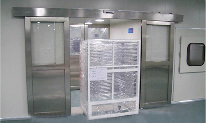 貨淋室是物料進入潔凈室所必需的通道,它可以減少物料進出潔凈室所帶來的污染問題。當(dāng)物料進入貨淋室后,高速潔凈氣流經(jīng)高效過濾器過濾后由可旋轉(zhuǎn)噴嘴從各個方向噴射至物料身上,有效而迅速清物料所攜帶的塵埃粒子。