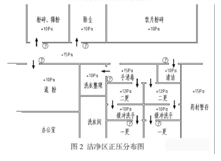 任何靠空間密封來維持潔凈室無菌和潔凈度是無濟(jì)于事的,只有保持無菌區(qū)域內(nèi)的壓力高于外界,才能防止污染物的侵入。并且潔凈區(qū)域內(nèi)各不同級(jí)別的潔凈功能間需要不同的壓力控制,以確保潔凈氣流定向流動(dòng),氣流只能從潔凈區(qū)流向非潔凈區(qū),從高一級(jí)別潔凈室流向低一級(jí)別潔凈室,從同一潔凈室潔凈度要求高的區(qū)域流向要求低的區(qū)域,只有保證在任何情況下都能維持潔凈室內(nèi)有序的梯度壓力分布不變,才能真正有效的控制潔凈度。